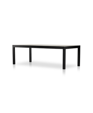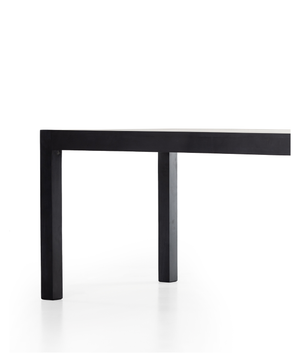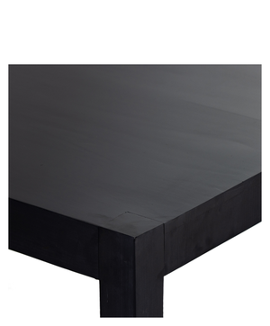 Beautifully simple in spirit. Black-washed solid poplar forms a clean, Parsons-style dining table with dovetail joinery, for a fresh update to Shaker-inspired styling.