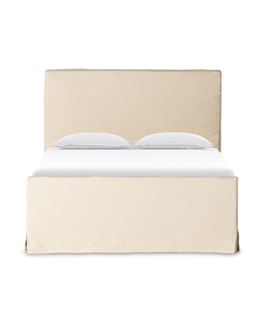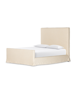 Slipcovered bed upholstered in sustainably made Belgian Linen™. Naturally durable and soft to the touch, Libeco™-sourced linens are artisan-made and free of toxic chemicals. Slipcovered styles are fully removable and machine-washable for easy care.