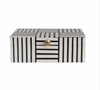 8"L x 6"W x 2-3/4"H Resin Box w/ Striped Block Pattern & Gold Knob, Black & White