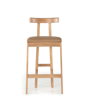 Opt for a beautifully monochromatic look inspired by Greek design. Solid Rosa Morada forms a T-shape frame for light tan top-grain leather seating perfectly sized for the counter.